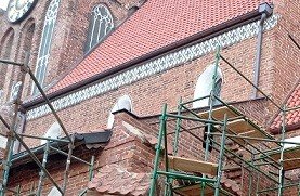 Nasza świątynia pięknieje - ściana boczna jest wyremontowana. Każda cegła oczyszczona i uzupełniona, a te bardzo uszkodzone wymienione zostały na nowe, które są niezwykłe, wielkie, takie same jak w średniowieczu. Wszystko musi być oryginalne, a konserwator zabytków to dogląda.