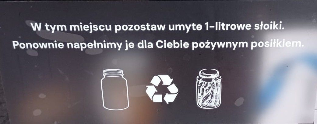 Prowadzimy stałą zbiórkę opakowań szklanych (słoiki o pojemności 1l zamykane metalowym wieczkiem). Słoiki będą poddawane myciu i sterylizacji, a po napełnieniu produktem żywnościowym, zamykane nowym wieczkiem i poddawane pasteryzacji. Następnie własnym transportem rozwożone będą do lodówek. Dodatkowo w lodówkach, w specjalnie wyznaczonym miejscu jest możliwość pozostawienia pustych słoików.